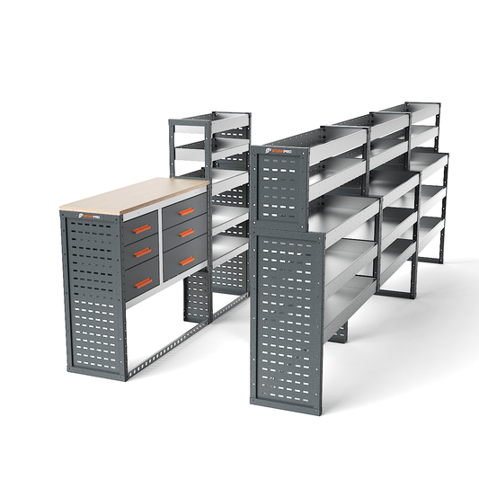 Looking for tough, British-made van racking for your Volkwagen? StowPro has you sorted. From the Caddy, Crafter, T6, and T7, our steel shelving systems are built to fit your van perfectly and handle whatever your trade throws at it. Whether you’re a sparky, plumber or general grafter, our van racking will help you tidy up, get organised and save time. It’s great value, easy to fit, and made in Britain using hardwearing steel that’s built to endure. Say goodbye to clutter and hello to a van that looks sharp and works smarter – all with StowPro.